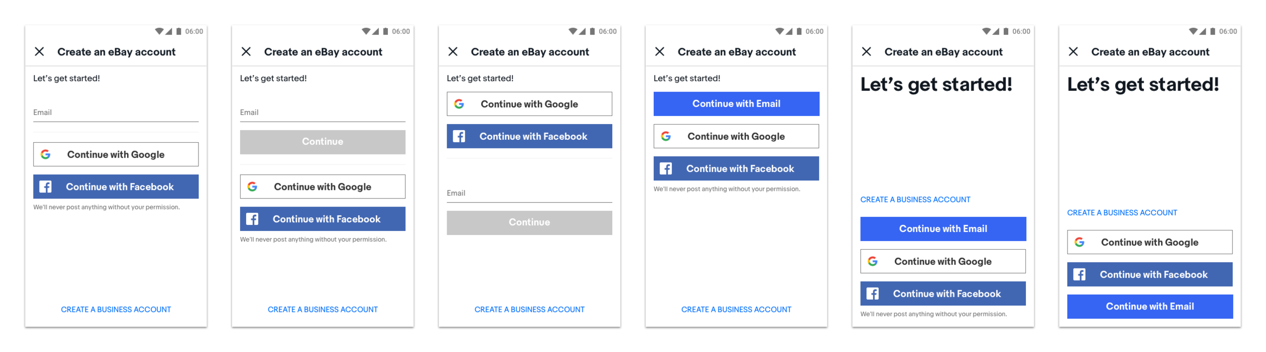 Step 3: At this point, the user is explicitly in the account creation context. The user makes a quick decision to continue with Facebook, over entering an email.